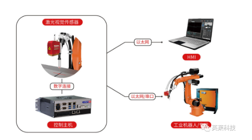 英萊激光視覺焊縫跟蹤系統(tǒng),可配套多種機器人即插即用,位于焊槍前端的傳感器可主動采集焊縫信息,控制主機負責(zé)焊縫信息的實時處理,并與工業(yè)機器人或焊接專機保持實時通訊,實現(xiàn)焊縫特征點尋位糾偏、焊縫實時跟蹤的功能,根據(jù)實際情況矯正焊接軌跡,靈敏高效。